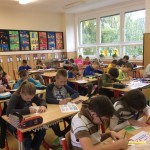 Jak pozdravit v jednotlivých zemích Evropy, si vyzkoušeli žáci v rámci jedné z aktivit Evropského dne jazyků. Pozdrav přece patří mezi první slovíčka, která se člověk učí v cizím jazyce. Každý žák si vyrobil hřbet knihy s vlajkou a pozdravem dané země. Všichni se do úkolu pustili s vervou a vznikla nám tak velmi pestrá Evropská knihovna pozdravů. Další část dne jsme věnovali střední Evropě. Po zhlédnutí pořadu “Evropské pexeso” se jednotlivé třídy pustily do tvorby plakátů o státech. Prvňáčci se zaměřili na Českou republiku a vznikla koláž s obrázky Pražského hradu, Staroměstského orloje, hradní stráže a spoustu dalších pěkných míst naší vlasti. Druháčci se odvážně pustili do koláže Polska s názvem hlavního města, vlajkou, živočichy, krajinou a významnými osobnostmi. Třeťáci si vybrali Německo, a i když poprvé pracovali s iPady, jejich výstupy v aplikaci Pic Collage sklízely obdivné pohledy zkušenějších páťáků. Ti zpracovali největší zajímavosti Rakouska. Čtvrťáci se nenechali zahanbit, také jejich činnost na iPadech je velmi zdařilá. Třídami se linula vůně pravého anglického čaje, mohli jsme si vyzkoušet chuť nápoje, který okouzlil nejednoho Angličana. Celý den jsme si užili a zpestřili jsme si vyučování zase něčím novým.
