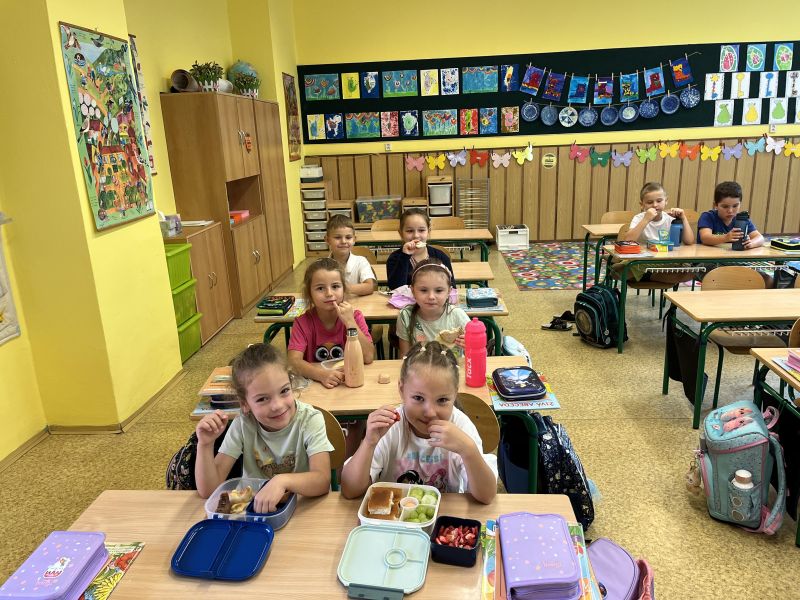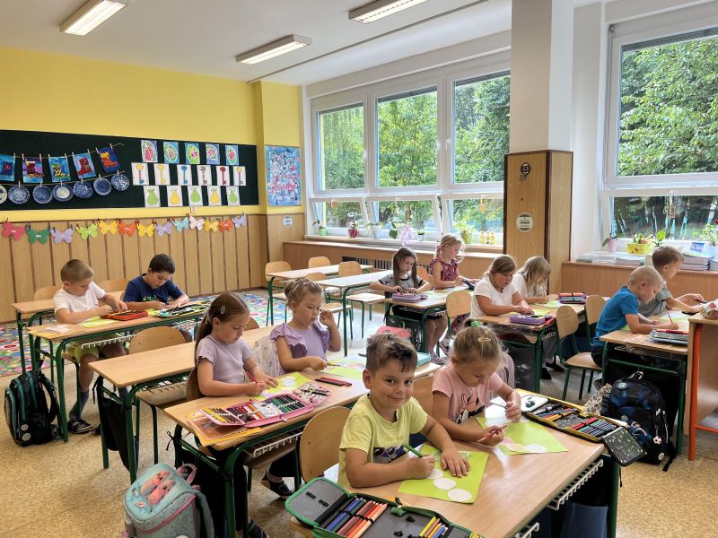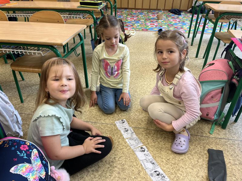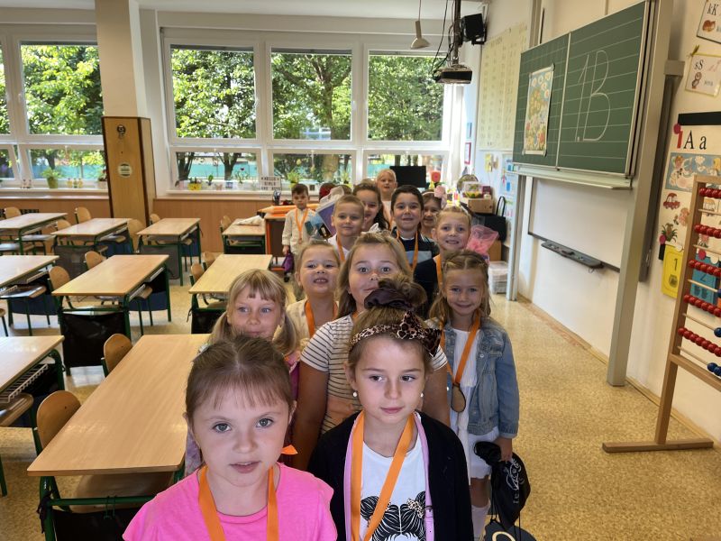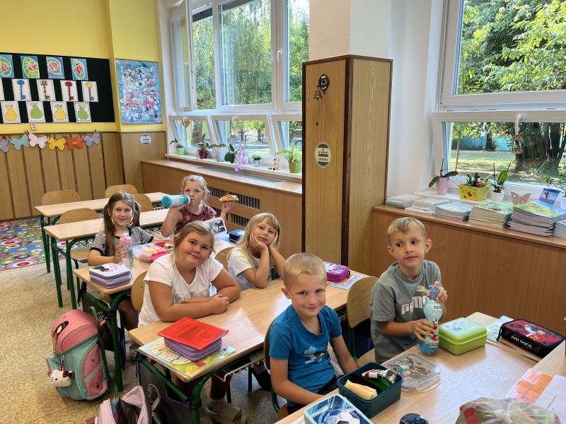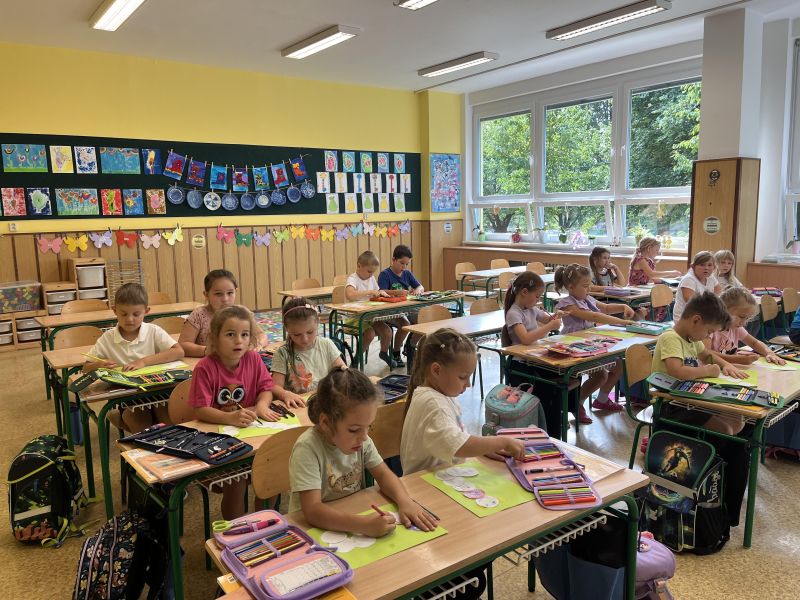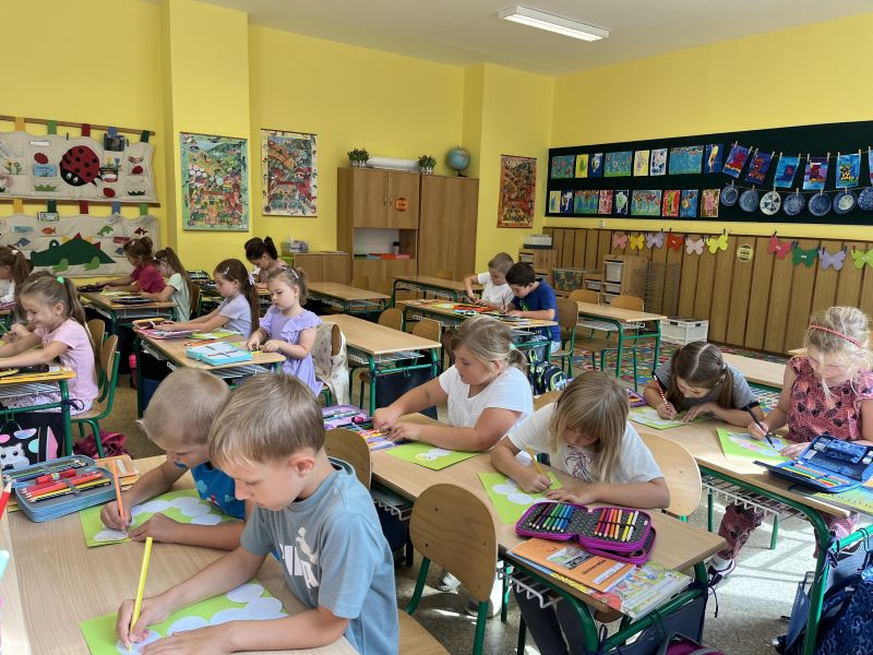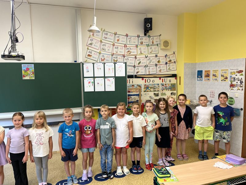 Naši prvňáčci vkročili do školy s odvahou i zvědavostí. Nejdřív jsme se poznali: jméno, co nás baví a na co se těšíme. Společně jsme si domluvili „naše pravidla“ – krátká a srozumitelná, která si v hodinách pravidelně připomínáme. Každý prvňáček má svého „motýla“ na samolepky za dobré chování a aktivitu. V hodinách trénujeme jednoduchý rytmus: připravím si pomůcky, poslouchám, ptám se, přemýšlím a zkouším. O přestávce už děti vědí, jak se správně chovat, aby byl čas na odpočinek i svačinu. Rozvrh dětem ukázal, co je čeká v češtině, matematice, prvouce, výtvarce, hudebce i tělocviku. A spolupráce? První mini projekt ve skupinách dopadl skvěle. Děti objevily, že když si rozdělí role a naslouchají si, jde to lehce a s úsměvem. Září tedy patřilo klidnému startu a těšíme se, co dalšího společně zvládneme.
