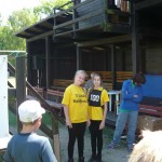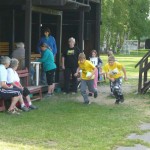 od osmi probíhala vydatná snídaně. V deset hodin začal závod. Neplachovičtí ale běhali až v druhé půlce startovní listiny. Lucie Rychtová a Natálie Michalcová měly jubilejní číslo 100 a Honza Tyll s Adamem Kelem měli číslo 130. Pavel Tyll a Matěj Hloušek nestartovali. Zatímco závodníci v první půlce startovní listiny běhali, my jsme se vydali na ranní procházku s rodiči do Třeboně. Po příchodu následoval oběd. Ve tři čtvrtě na dvě vyběhla první neplachovická hlídka ve složení Lucie a Natálie. Běhalo se přibližně jednu až dvě hodiny. Na trati bylo devět stanovišť, která závodníci nesměli vynechat. Stanoviště byla taková – první pomoc, živočichové, vlastivěda, plavba na kajaku, střelba, lezení po laně